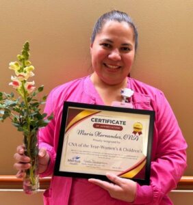 Taking this knowledge and determination into the real world began as a paid internship at Meritus Hospital that then bloomed into accolades from managers and numerous nominations for workplace awards that reward leadership, diligence, and lasting impact on patients. Maria’s work ethic is identifiable by her willingness to answer call lights and assist in any way possible with no complaints, despite often being the only CNA on the labor and delivery floor. In the words of her team member, “people like Maria are hard to find.” In recognition of Maria’s passion and dedication to the patients and staff at Meritus, on June 18, 2025, Maria was honored with the CNA of the Year-Women’s and Children’s award.